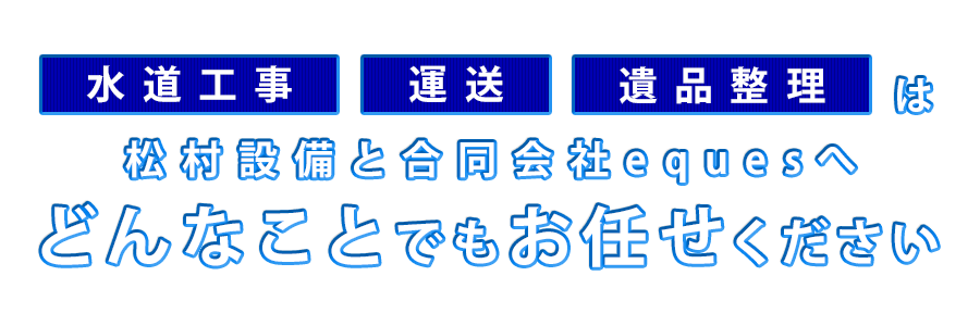 また、松村設備が行う水道工事業と並行して、合同会社equesとしては軽貨物のルート配送・定期便・チャーター便などを行う運送業や、不用品の整理・お家の片付け・生前整理・遺品整理にも携わっています。